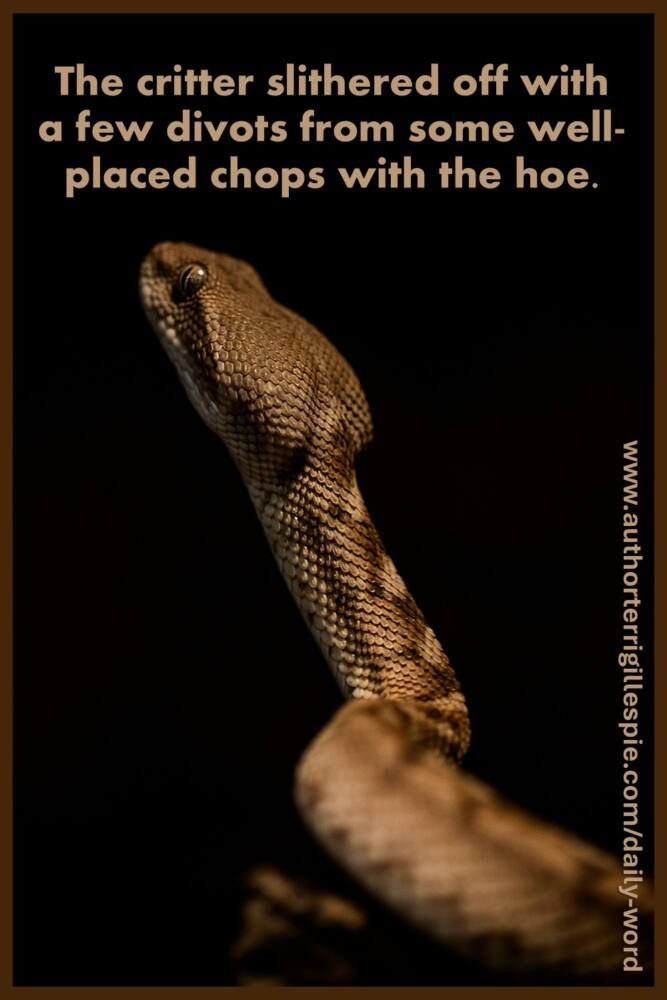 Unfortunately, apparently the humongous slither-er missed one of the copperheads. Mom was doing yard word with a hoe and lo and behold, a copperhead attacked her. But my fearless mother began chopping with her hoe at that snake all the while screaming for help.