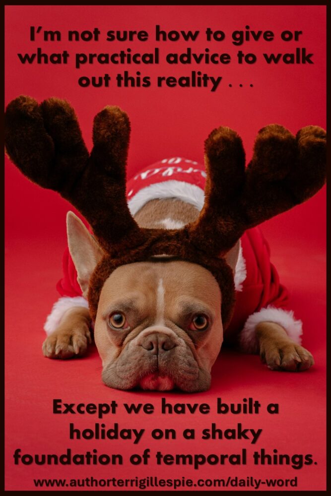 I’m not sure how to give or what practical advice to walk out this reality . . . Except we have built a holiday on a shaky foundation of temporal things. Jobs, fiscal viability, and genius marketing control our way of thinking. Envy, rejection, and an overall lack of stewardship happen because there’s just too much stuff. That Santa only visits the wealthy. And GOD’s gifts of imagination and creativity have been wrongfully used by humanity to manipulate us. Because can true awe be purchased?