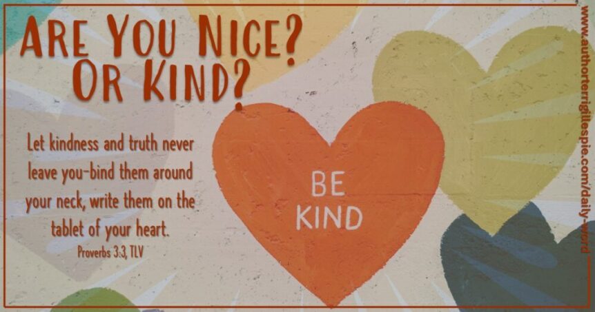 Honestly, I have always thought of nice and kind as interchangeable. That apparently has been my problem. Even though nice is pleasant, it’s very frustrating when you assume it is kindness.