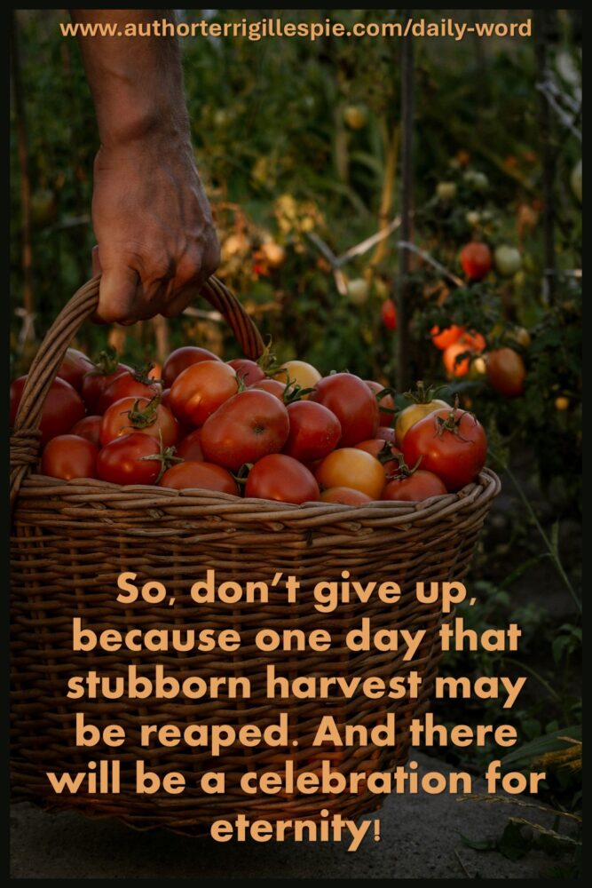 So, don’t give up, because one day that stubborn harvest may be reaped. And there will be a celebration for eternity!