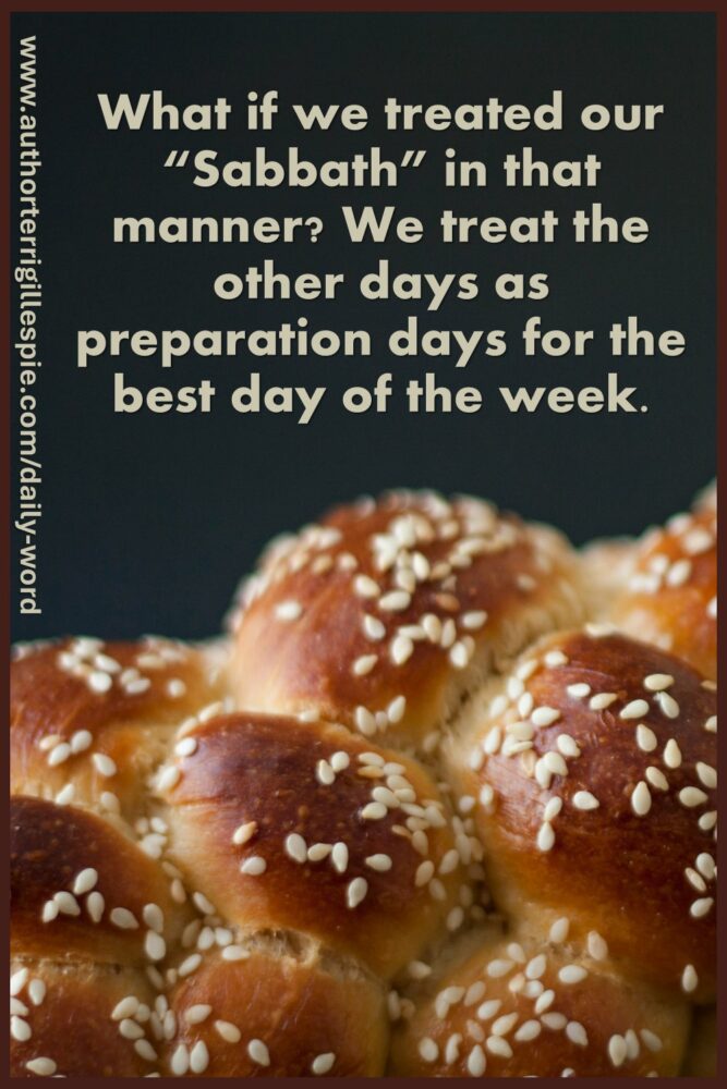 What if we treated our “Sabbath” in that manner? We treat the other days as preparation days for the best day of the week. Not just what we’ll wear, but perhaps how we can bless others, how we can teach our children ways to worship and honor the LORD. Taking moments to pause and reflect and be in awe and wonder of God’s love and majesty. Develop new traditions for your family, or for yourself.