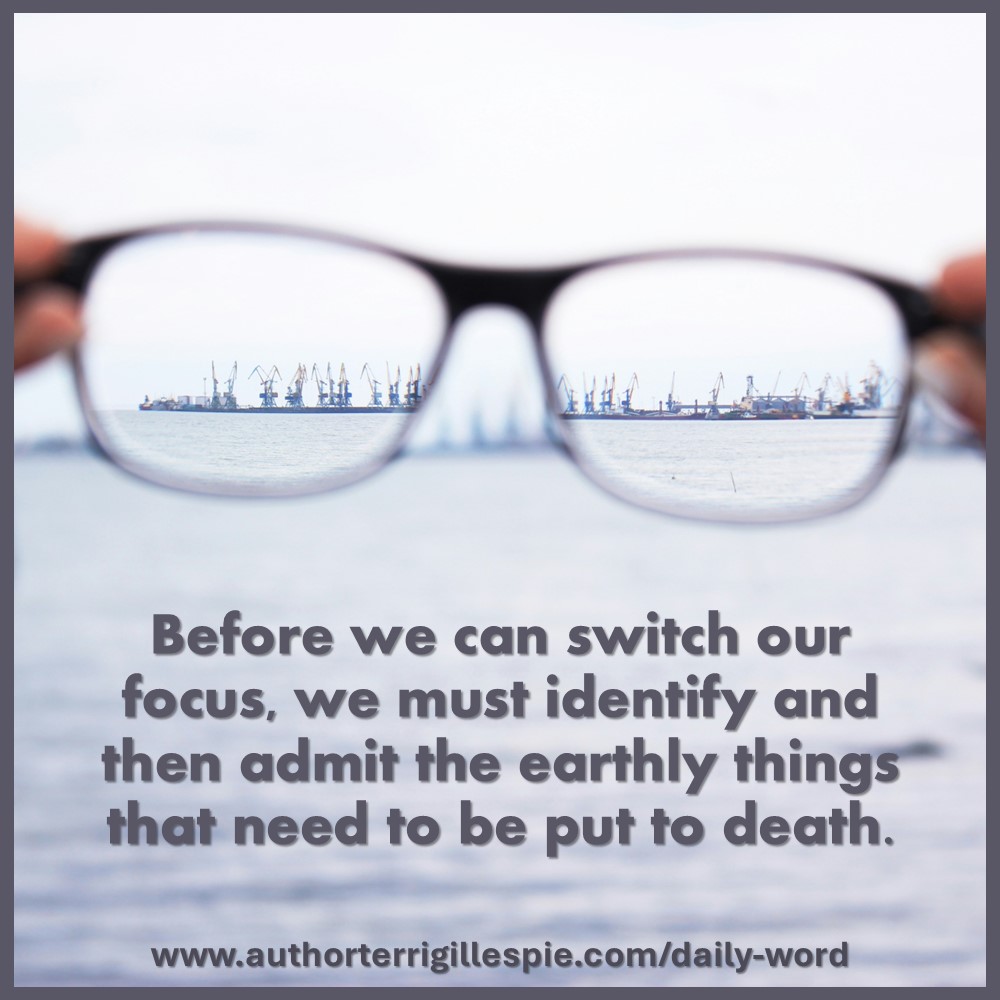 Before we can switch our focus, we must identify and then admit the earthly things that need to be put to death. During this holiday season of buying and decorating and family dynamics is a good time to try this.