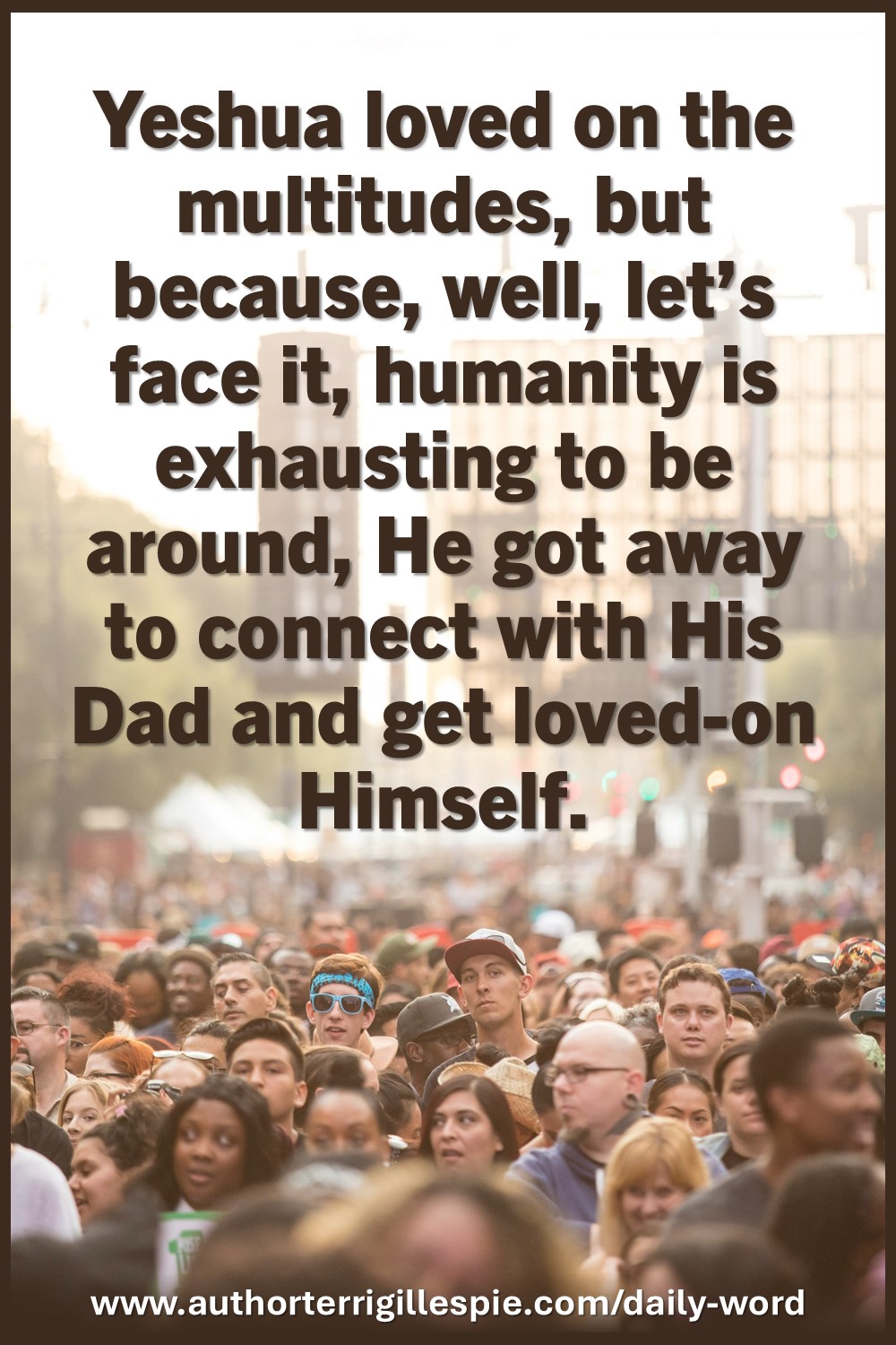Yeshua loved on the multitudes, but because, well, let’s face it, humanity is exhausting to be around, He got away to connect with His Dad and get loved-on Himself. For those sweet souls who give so selflessly, like our Messiah, please remember to get away from time to time, and let your Father and your family love on you. It’s okay to be in a moment of beauty, joy, love, laughter and enjoy it. In fact, it follows our Messiah’s example.