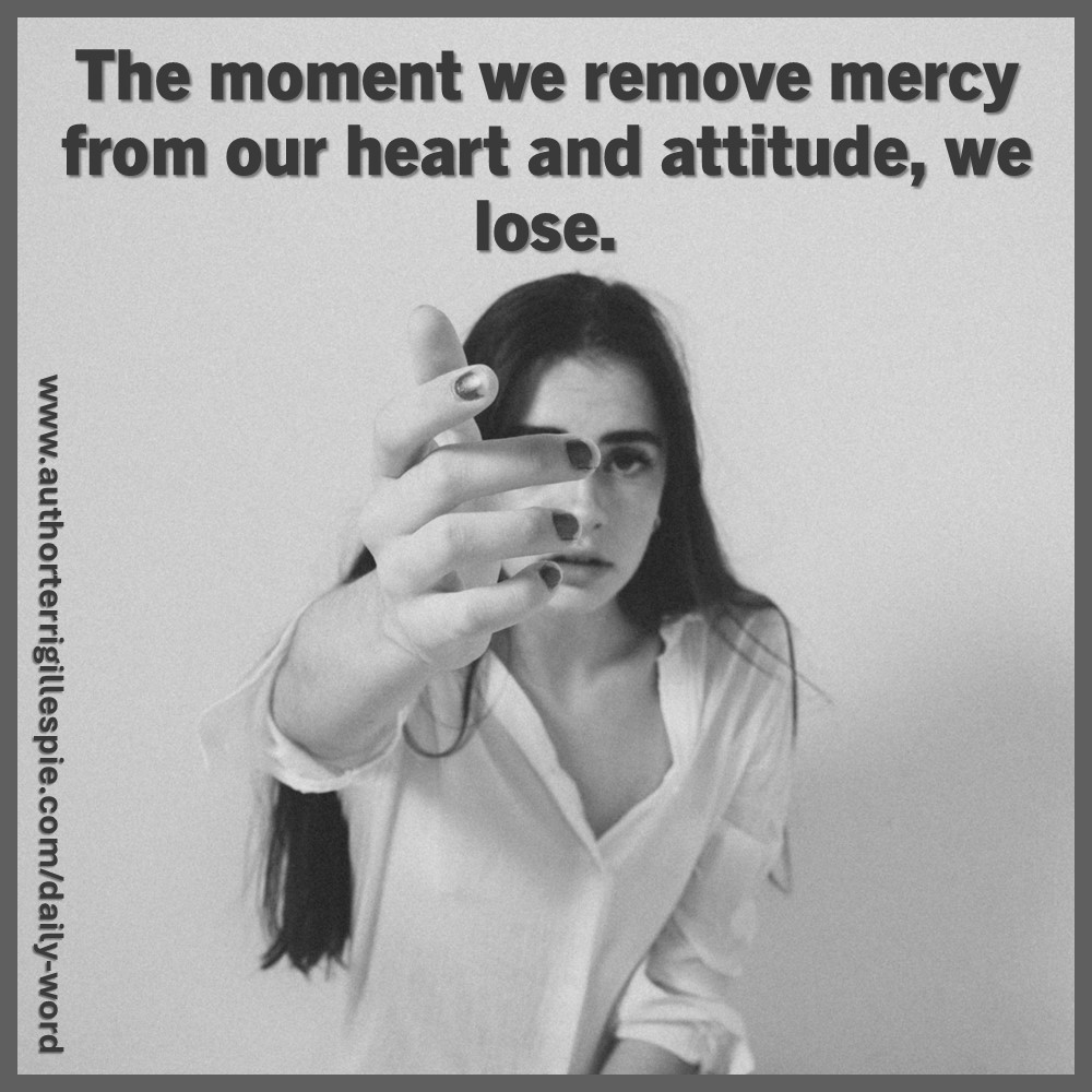 Mercy: The moment we remove mercy from our heart and attitude, we lose. Mercy doesn’t mean we condone behaviors or beliefs. It means we don’t react out of unforgiveness. No matter how rude or cruel.