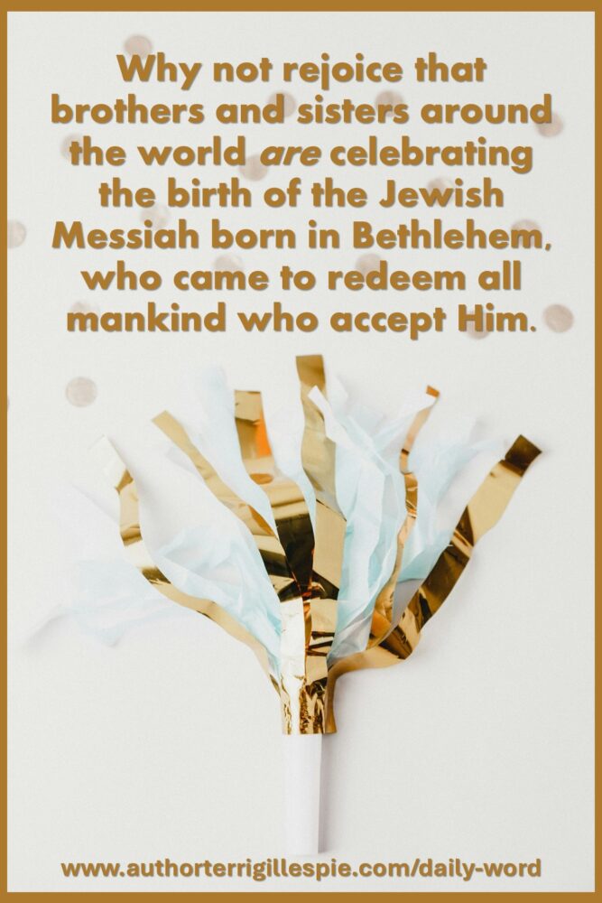 My rabbi in Philadelphia once said that it was a waste of time to quibble—unless someone wants to seek. Why not rejoice that brothers and sisters around the world are celebrating the birth of the Jewish Messiah born in Bethlehem, who came to redeem all mankind who accept Him.