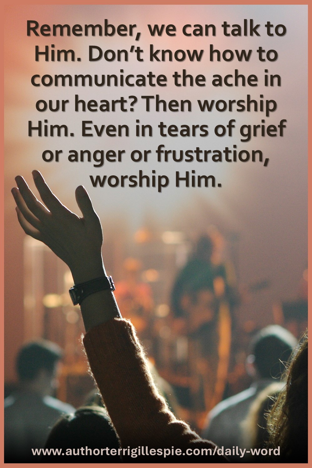 the ache in our heart? Then worship Him. Even in tears of grief or anger or frustration, worship Him.