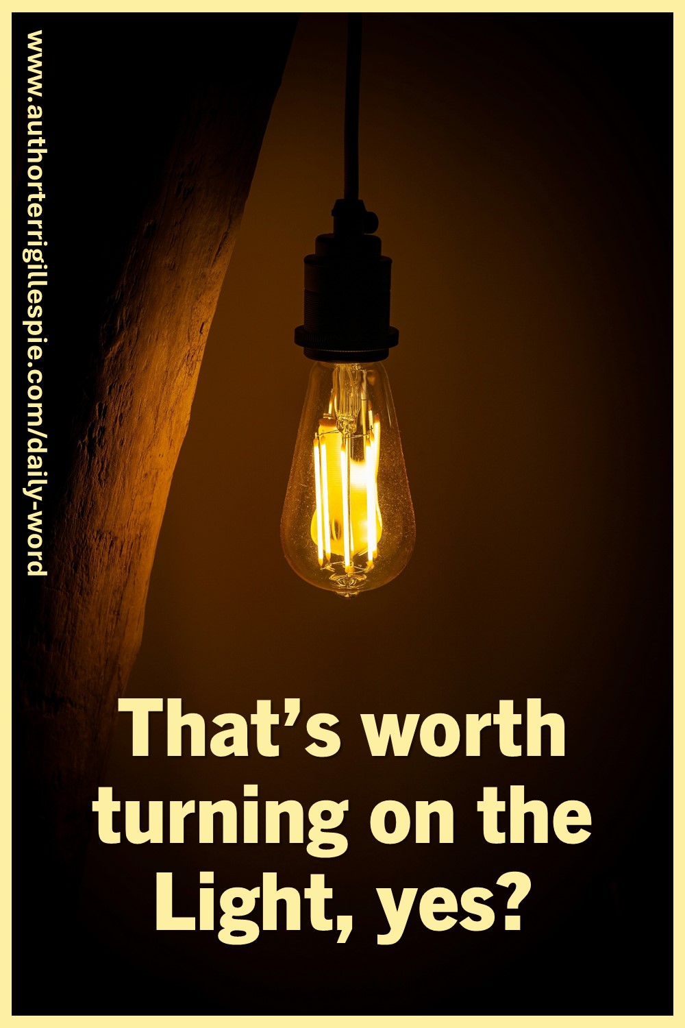 Turn on the Light! Ever walk into a darkened room to get something, thinking “I don’t need to turn on the light. What I need is right on the dresser or bed or nightstand.”? Except we reach for that something only to stub our toe and as we feel our way across the surface, we knock items onto the floor? LOL!