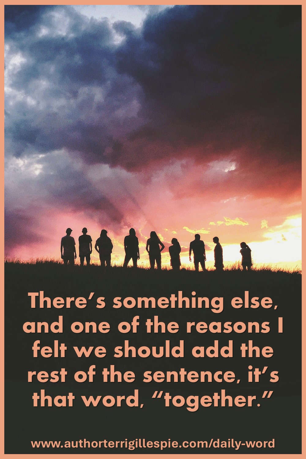 should add the rest of the sentence, it’s that word, “together.” And for that matter, “like-minded” too. Because Paul again is extrapolating from Yeshua’s prayer for unity in John 17. It is that unity that will glorify both Yeshua and His Father. In that unity, the Holy Spirit can work miracles within us and all around us.