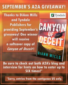 Yes! Thanks to DiAnn and Tyndale Publishing, this month’s giveaway winner will receive a softcover copy of her latest release, Canyon of Deceit!
